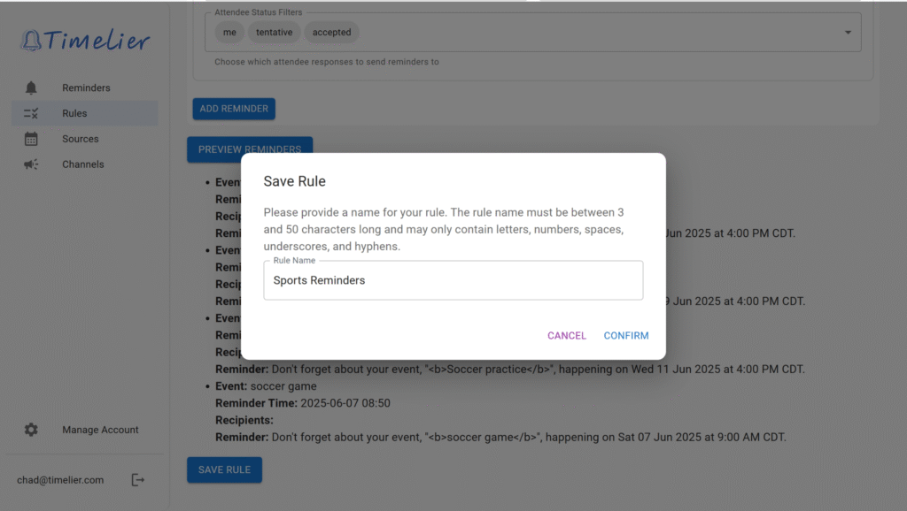 If the list of reminders looks correct for what you are trying to achieve, click “Save Rule.”